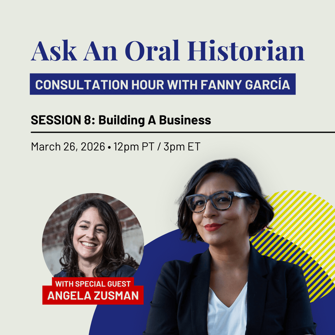 Ask An Oral Historian consultation hours are your chance to dive into the intricacies of oral history and learn alongside fellow storytellers. Whether you’re wrestling with a current project or just curious about the craft, these monthly 60-minute working sessions are your space to grow and ask questions in an intimate, small-group setting.